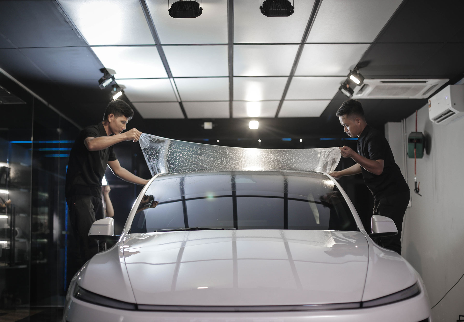 Precision Cleaning: Thorough cleaning of the glass roof to ensure optimal adhesion.Heat Forming: The film was shaped to match the roof curvature for a perfect fit.One-Piece Application: Applied using Quad’s professional installation solution for a clean, high-clarity finish.